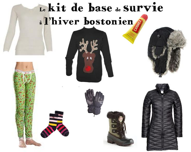 Le Bostonien a une résistance au froid épatante, sidérante même parfois. L’hiver est à nos portes, bien que la neige fasse encore défaut pour le moment, mais il commence à faire plutôt frisquet. Et pourtant, je vois encore certaines personnes en tongs et en tee-shirts (avec parfois seulement une doudoune sans manche par-dessus). L’une de mes copines se promène en ballerines, sans chaussettes (of course), à la fraîche. Quel est leur petit secret pour résister au froid ? Car moi, depuis que j’ai ma parka-doudoune, je ne l’ai pas lâchée, j’ai goûté au plaisir d’avoir l’impression d’être emballée dans ma couette quand je sors dehors, et j’adore cette sensation. Parfois, pour faire semblant que je suis américaine, je sors de chez moi sans manteau, traverse la rue pour aller m’acheter un café. Je me sens extrêmement locale. Néanmoins, pour toute personne qui n’aurait pas grandi dans le grand froid, je vous recommande mon kit de vêtements de base pour l’hiver bostonien.