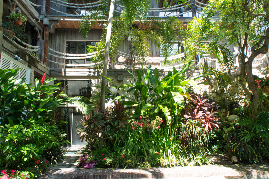 La Casa Antigua, construite en 1919, qui était autrefois un hôtel où avait logé Hemingway, la première fois qu’il est venu dans les Keys – la légende dit que c’est ici qu’il est tombé amoureux de l’île. Aujourd’hui c’est une maison privée et un magasin qui s’appelle Crotte de pélican. On peut visiter le jardin d’intérieur (photo ci-dessous), un truc un peu dingo.