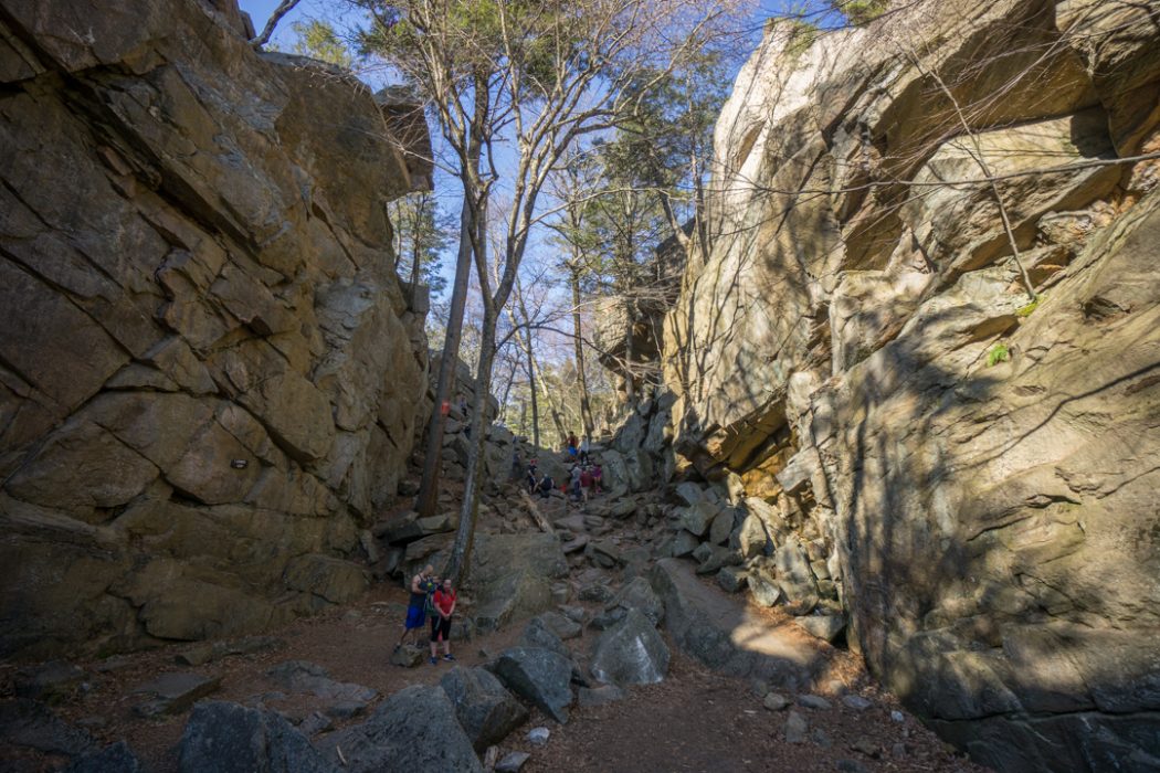 J’hésite. J’hésite à écrire un titre aussi racoleur que « j’ai vu le Grand Canyon de Nouvelle Angleterre ». Parce que (1) le Grand Canyon n’a pas d’équivalent (2) parce que j’évite les titres racoleur du genre « top 10 » « the best! » « incredible! » Mais c’est marrant, malgré tout, cette description, tellement exagérée que finalement ça vaut le coup. Alors oui, j’ai marché dans le Grand Canyon de Nouvelle Angleterre, j’ai même marché sur ses bords, risqué ma vie en escaladant ses rochers.