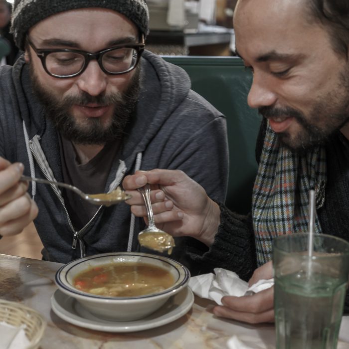 (20) On a bien retenu la leçon de New York : prendre le métro plutôt que marcher non stop peut sauver la journée. On prend donc le métro juste pour 4 stations, et on se retrouve dans le West Village. Merci encore au blog de Jeanne et sa carte : on s’arrête chez Recette. Ce restaurant fait l’unanimité : on adore tous les trois, le brunch est excellent – grits au foie gras, pâté de tête, le plat du jour, c’est du rib fondant, et une brioche perdue au Peanut Butter et baies pour la touche sucrée. On reste pendant un long moment à l’intérieur du resto, bien au chaud.