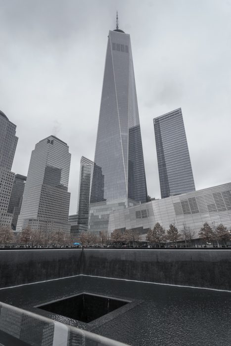(19) Pas très loin, se trouve le Mémorial du 11 Sept, et la tour du One World Trade Center qui était loin d’être terminée la dernière fois qu’on est venu à New York. A la place des deux tours du World Trade Center se trouvent deux piscines dont on ne voit pas le fond, c’est assez flippant. Il y a beaucoup, beaucoup de monde en ce dimanche glacial.