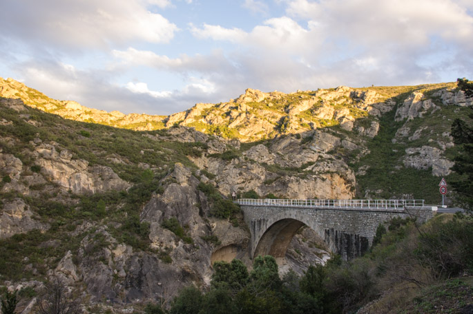 Après cette visite, et en suivant les conseils d’une carte routière Michelin, on a repéré une « route verte ». Bingo, c’est la route des châteaux du pays cathare. Il était trop tard pour se lancer à fond et aller voir les châteaux perchés sur leurs rochers, mais on a croisé de jolis villages, et de beaux points de vue dans les montagnes.