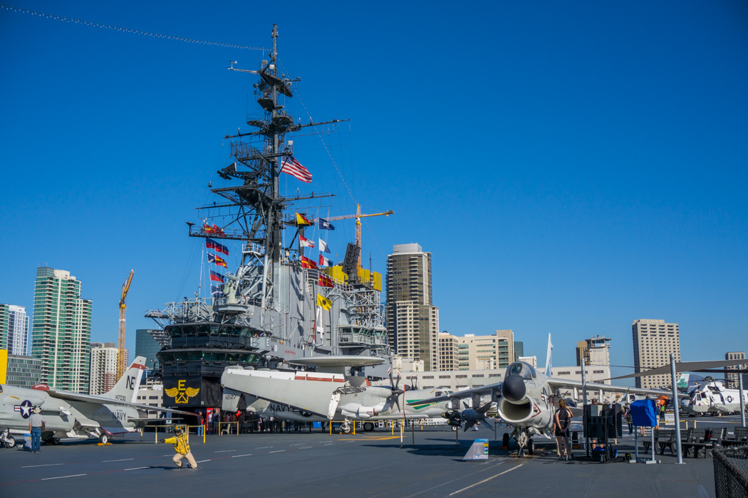 Il y a des visites dont je n’attends pas grand chose et qui, finalement, m’étonnent et me passionnent. Visiter le porte-avion dans le port de San Diego, en Californie, il y a un mois de ça en fait partie. Je me disais d’abord : bof, et en fait, c’était top.