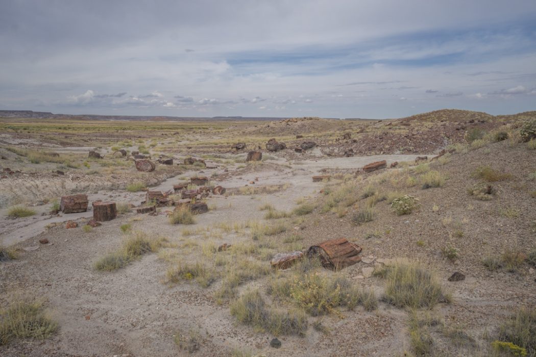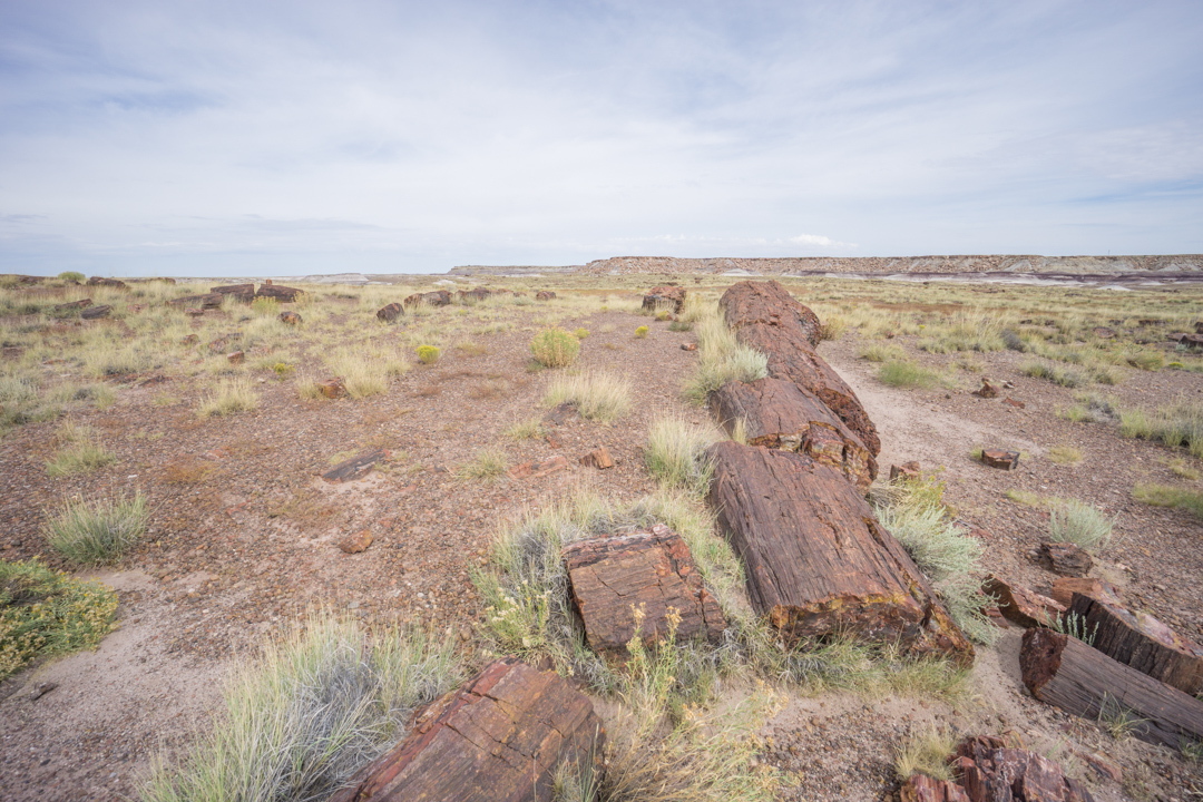 La forêt pétrifiée était l’une des étapes de notre road trip des déserts au sud des Etats-Unis, du Texas à la Californie, pendant l’été 2015 ; son nom nous a attiré malgré les distances incroyables pour y parvenir, on faisait cap vers l’ouest, mais on a fait un crochet vers le nord de 800 km pour aller voir cette forêt, qui fait partie des parcs nationaux américains. C’est un endroit qui ne m’avait pas laissé un souvenir impérissable à l’époque, et j’ai été surprise de ce que j’ai vu en redécouvrant les photos que Manu a prises ce jour-là.