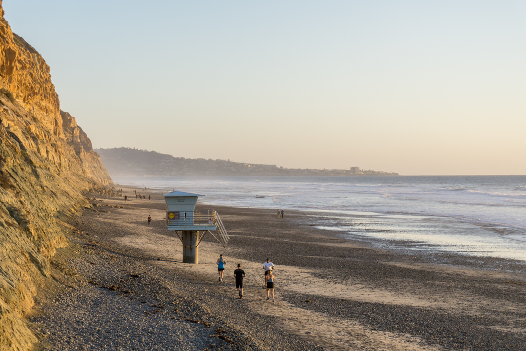 Torrey Pines à San Diego est une plage magnifique. Est-ce que ça en fait la plus belle des Etats-Unis ? Maybe. Je ne sais même pas pourquoi je fais ce classement subjectif, mais en retournant sur cette belle plage la semaine dernière, je me suis dit : mais merde alors, que c’est beau par ici. Il n’y a rien d’ennuyeux avec ses rochers et ses grosses vagues, ses couleurs jaunes dans la journée et dorées au coucher du soleil et puis ses promenades dans des mini-canyons dans les falaises tout autour. Le truc qui rend Torrey Pines aussi cool, c’est qu’elle est super proche d’une grande ville, San Diego = super accessible.