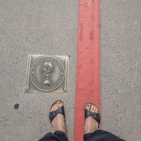 A peine sortie de la gare de Salem, pas moyen de me perdre : il y a une ligne rouge peinte sur le sol, au milieu du trottoir. Comme à Boston, qui a son Freedom Trail !