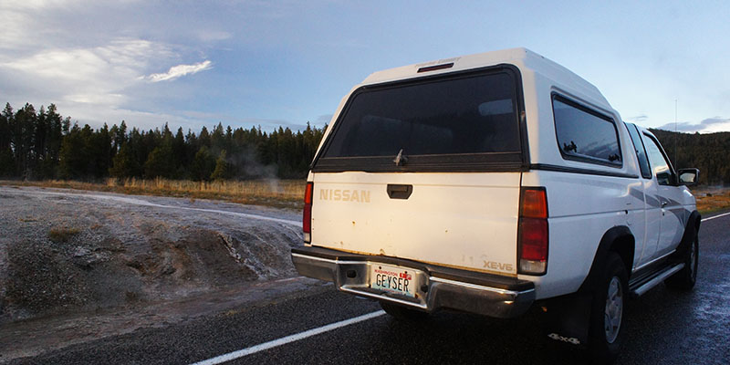 Yellowstone forever. Notez la plaque d’immatriculation super classe de cette voiture. On a croisé des gens qui nous ont dit être venus près de dix fois dans ce parc, à différents moments de l’année.